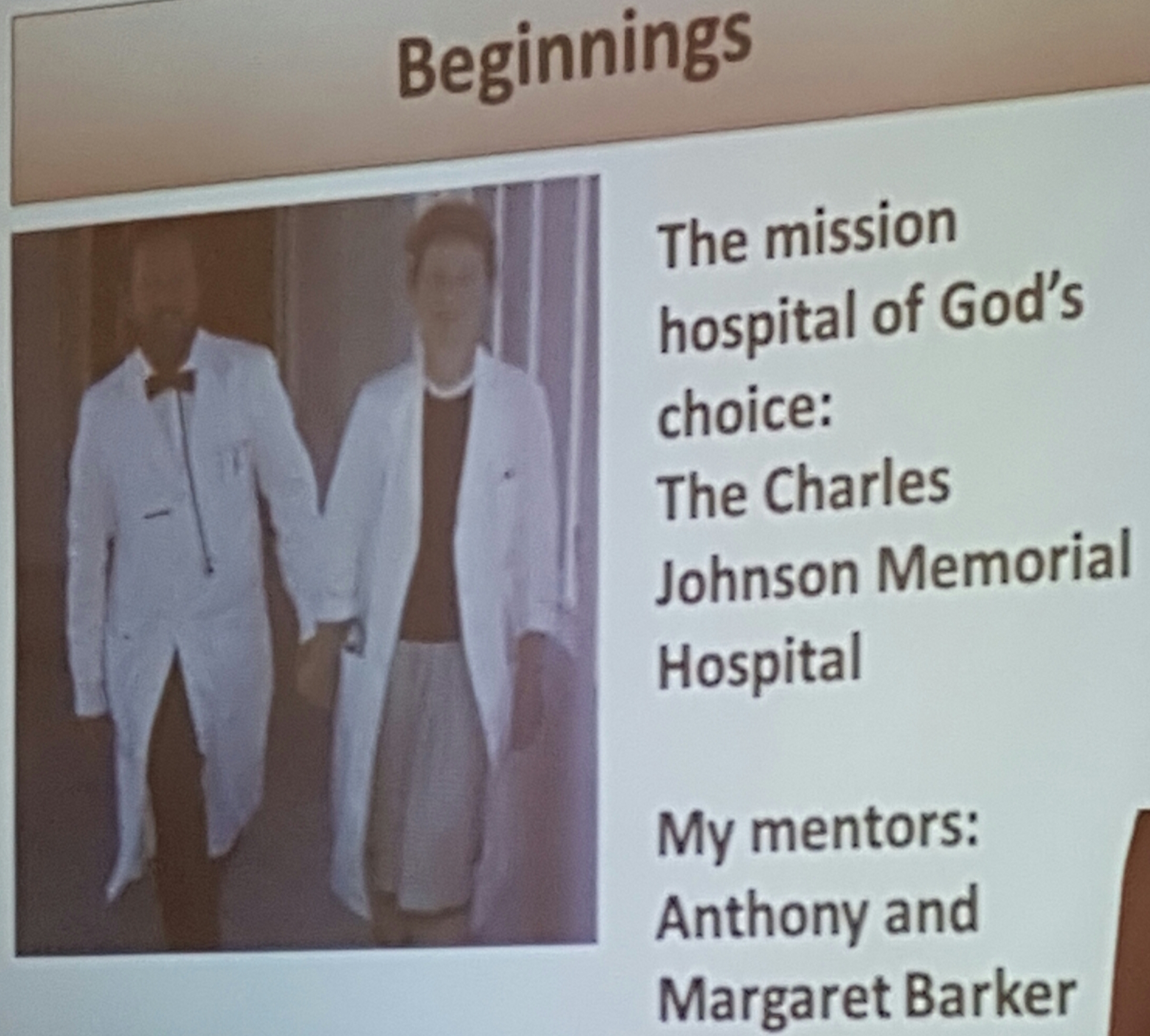 - Dr Jon Larsen shared his and wife’s life journey as followers of Christ, with highlights of the mentorship at the Charles Johnson Memorial Hospital from Dr Anthony & Margaret Barker.
